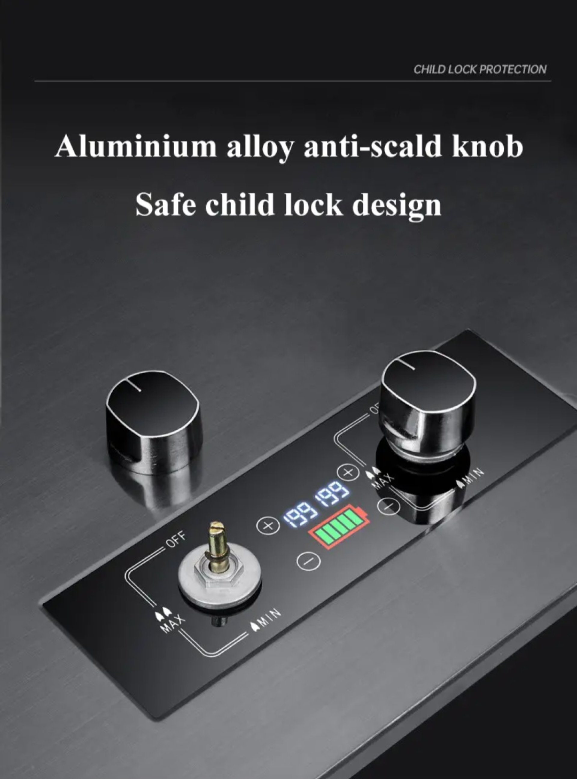 Seguridad: como bloqueo de seguridad para niños, pantalla de temperatura, pantalla de potencia, recordatorio anti-escaldaduras, modo temporizador lo ayudarán a cocinar de manera perfecta y precisa; el quemador tiene una función de encendido piezoeléctrico, solo presione y gire la perilla para iniciar la llama; cuando la llama se apaga, el dispositivo de termopar patentado corta el gas.