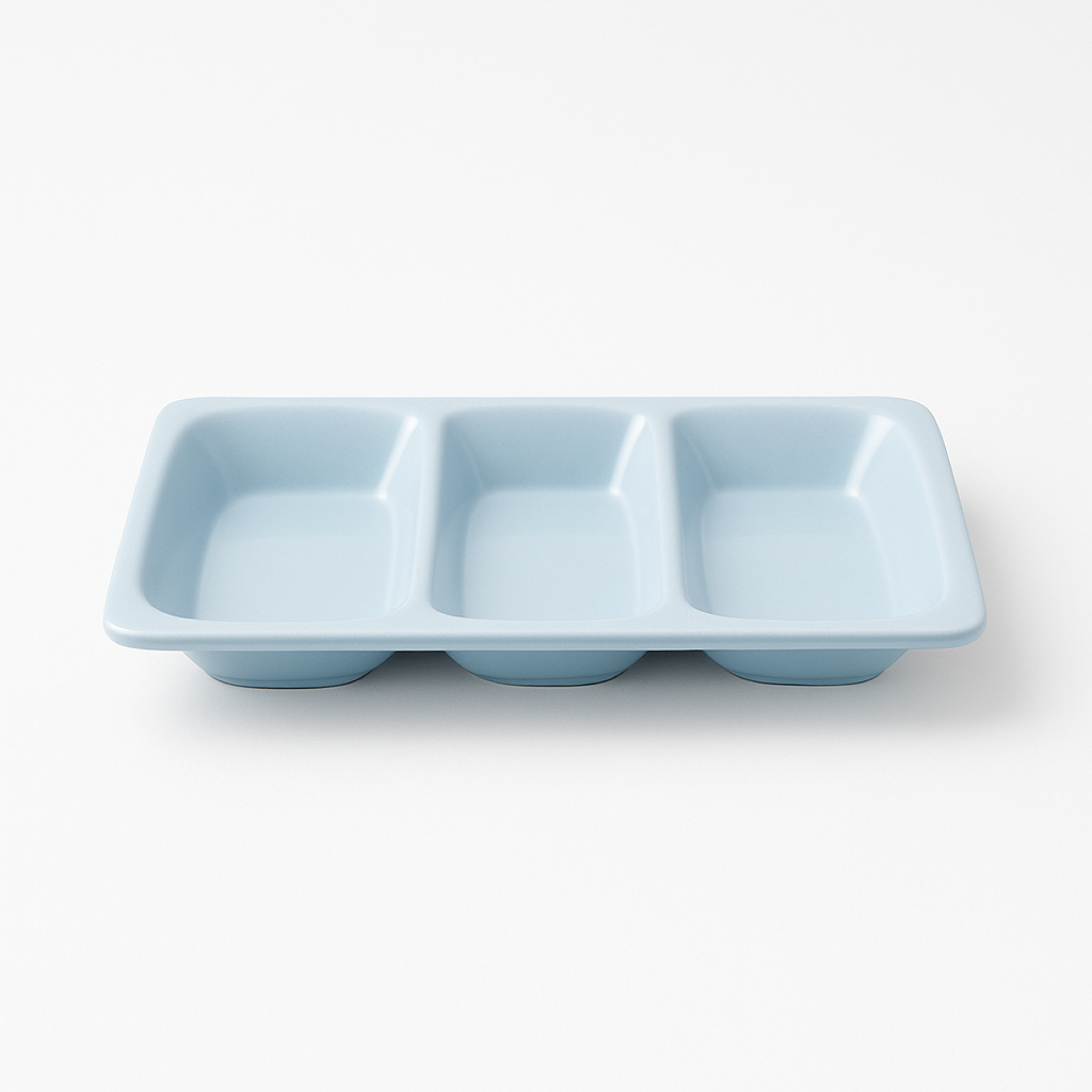 Plato de melamina con 3 compartimentos, ideal para servir alimentos de forma ordenada y práctica. Fabricado en melaform de alta resistencia, es ligero, duradero y fácil de limpiar. Perfecto para uso doméstico, restaurantes, caterings y servicios de comida.